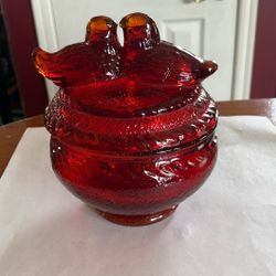 Vtg Viking Ruby Red Glass Love Birds Trinket $25Everett, WA