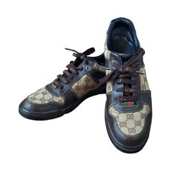 Vintage GUCCI Men's GG LowCut Sneakers 162961 Brown Canvas/Leather Sz 8.5 G US 9$150Mukilteo, WA