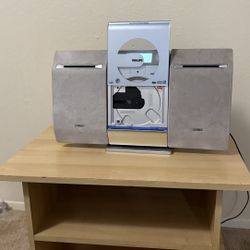Light Wood TV Stand + Philips Stereo System with Speakers – Bundle$0Everett, WA