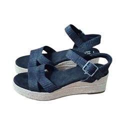 NWT TOMS Audrey Ankle Strap Espadrille Platform Black Wedge Sandals, Size 6$30Mukilteo, WA