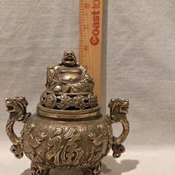 Chinese VTG brass handmade "Maitreya" Budda incense burner(made during Imperial Qialong Manufacture $165Carnation, WA