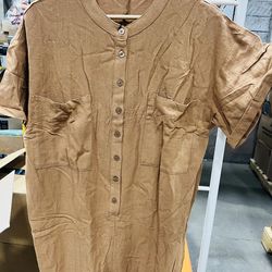 Women’s Linen Blend Wide Leg Jumpsuit Cap Sleeve Neck Button Down Casual$10Tacoma, WA