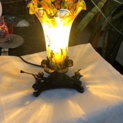 Mid century desk lamp glass brass cherubs$35Woodway, WA