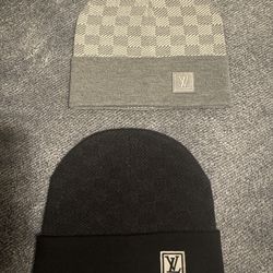Louis Vuitton Set of 2 Winter Beanies Gray Check & Black Solid with Logo$175Seatac, WA