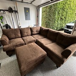 Brown Microfiber Sectional Couch And Ottoman $650Kent, WA