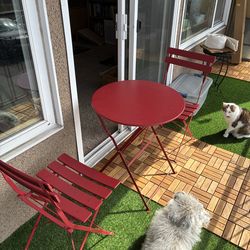 Red metal patio table and chairs$60Seattle, WA
