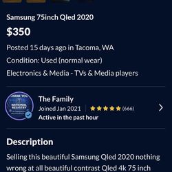 TV SCAMMER. “The Family” DO NOT BUY. $1Tacoma, WA