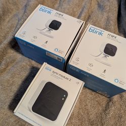 Open box- Lot of 2x Blink mini indoor hd cameras & sync module 2 storage hub$80Seattle, WA