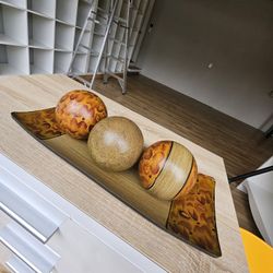 Hosley Brown Hand Painted Pattern Decorative Bowl Tray and Orb Ball Set 15 Inches Long Burlwood Style Finish Ideal Gift for Weddings Party Spa R$15Kent, WA