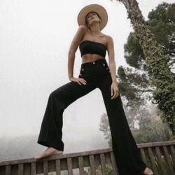 Zara Wide Leg Sailor Gold Buttoned Pleated Trousers in Black Size Large $30Kirkland, WA