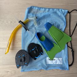 Sporti fins, paddles, Finis snorkel, swim gear with mesh bag$55Seattle, WA