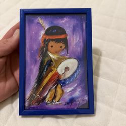 Ted DenGrazia Print "Pima Indian Drummer Boy" Wood Vintage 6.5X4.5 Inch Art$30Federal Way, WA