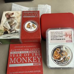 2016 1oz NGC PF70 ULTRA CAMEO AUSTRALIA YEAR OF THE MONKEY COLORIZED SILVER COIN $160Seattle, WA