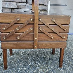 Vintage MCM Accordion Dark Wood Wooden Sewing Box$70Auburn, WA