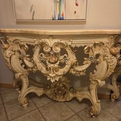 Intricate Carved Wood Console Table with Viney Metal Base$199Seatac, WA