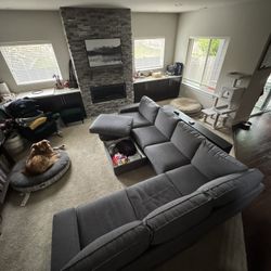 Charcoal black linen sectional couch with massage feature and phone charging !$650Seattle, WA
