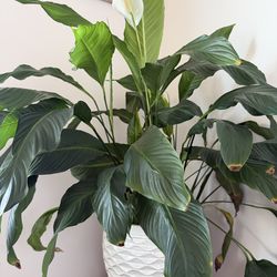 Flowering peace Lilly with white ceramic pot with drainage holes and tray attached$60Seattle, WA