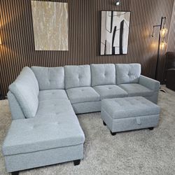 Gray Linen Sectional Couch And Ottoman $650Tacoma, WA
