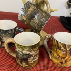 Wild Wimgs Scultped Mug Set Of 4 Plus Antler Stand/ Mug Holder$75Tenino, WA