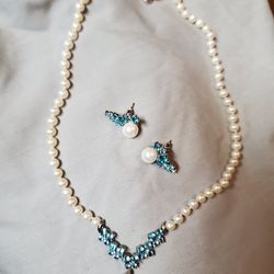 Genuine Pearl and Blue Topaz Necklace & Earring Set – 925 Sterling Silver$120Tacoma, WA
