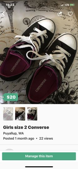 Converse worn once ****girls size 2****$15Puyallup, WA