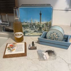 7 Piece Vintage Lot- British Biscuits Tin Box, Powder Box, Art Deco Belt Buckle Small, Etc. $25Puyallup, WA