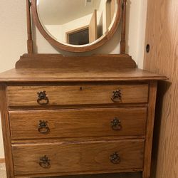 Early 19th Century Antique Tiger Oak 3 Drawer Dresser/ Dressing Table W/ Oval Mirror$250Rainier, WA