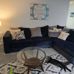 Sectional Couch with Chaise, BLUE Microfiber LIKE NEW! End Tables and Coffee Table included! $1,650Grapeview, WA