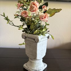 stone pot 9"x5.5" w/silk flowers all new material $10Tacoma, WA