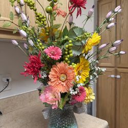Beautiful Handmade Artificial Spring Flowers in Glass Vase with Bow. Over 2ft tall from base to Top of Arrangement.$20Lewis Mcchord, WA