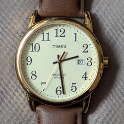 Timex Gold Tone Wristwatch Analog Indiglo Brown Leather Date Water Resistant$37Puyallup, WA