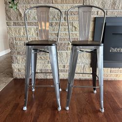 2 Counter Height (30 Inch) Metal And Wood Farmhouse Barstools With Backs$75Gig Harbor, WA