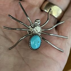 VINTAGE NAVAJO LARGE STERLING SILVER AND TURQUOISE SPIDER PIN$95Olympia, WA