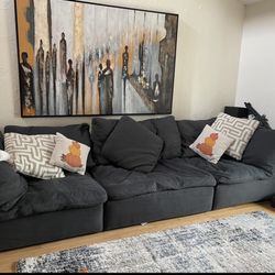 Charcoal Linen Sectional Couch And Ottoman $700Tacoma, WA