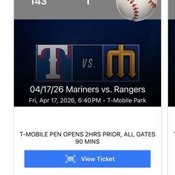 Mariners Vs Rangers, 4/18 (Cal Raleigh Jersey Night)$130Seattle, WA