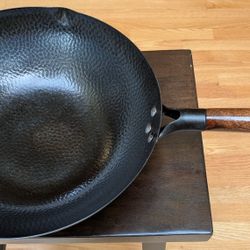 13” (32cm) Hand-hammered Non-Stick Carbon Steel Wok with a Wooden Handle