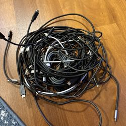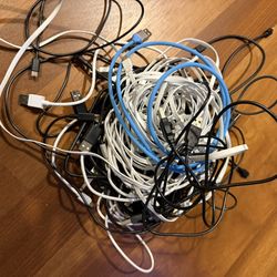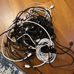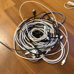 Mixed lot of USB-A to Lightning charging cables in multiple lengths. Includes a variety of white, black, and braided cords as shown. Good for iPhones,$12Woodinville, WA
