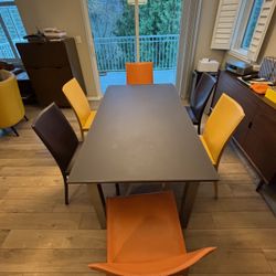 Table Table and six chairs in good condition; the table is glass and the chairs are original leather.$150Renton, WA