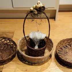 Baskets, 3 are 9 1/2” round and 1 is 5” round w: bird and white leafs.$10Gig Harbor, WA
