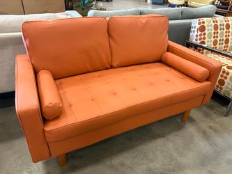 Modern Tufted Tangerine Orange Leather Loveseat with Tapered Legs$199Seatac, WA