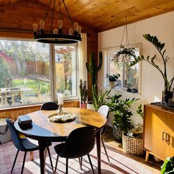 Industrial Style Round Dining Table with Four Black Metal Chairs$300Renton, WA