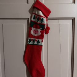 Vintage Knit Christmas Stocking Santa And Christmas Trees $8Tacoma, WA