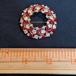 Round Red and Gold Enamel Brooch with Clear Glass Stones, 1.75 Inch$13Puyallup, WA
