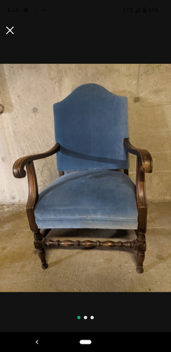 Blue Fabric and wood chair$25Redmond, WA