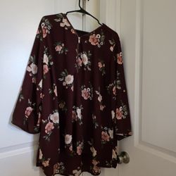 Burgundy Floral Blouse With Zipper Neckline$5Edgewood, WA
