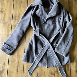 JouJou Womens Peacoat Belted Double Breasted Gray Wool Blend Jacket (Size M)$50Puyallup, WA