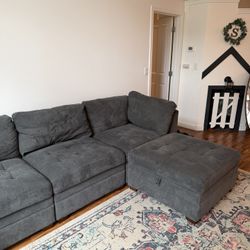 Gray Linen Sectional Couch And Ottoman $700Seattle, WA