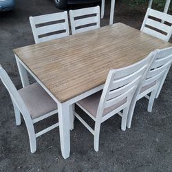 Ashely Rustic Dining Table And 6 Chairs/Set/Farmhouse/Modern/Country/Rustic/Shabby/Distressed/Rare/White/Classic/ Home/Kitchen/Room/Nice Condition/Uni$300Tacoma, WA