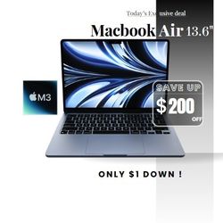 Apple MacBook Air M3 Chip 16GB RAM - $1 DOWN TODAY, NO CREDIT NEEDED - WARRANTY INCLUDED$999Renton, WA