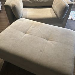 CRATE & BARREL Tan Oversized Armchair with Rolling Storage Ottoman$199Seatac, WA